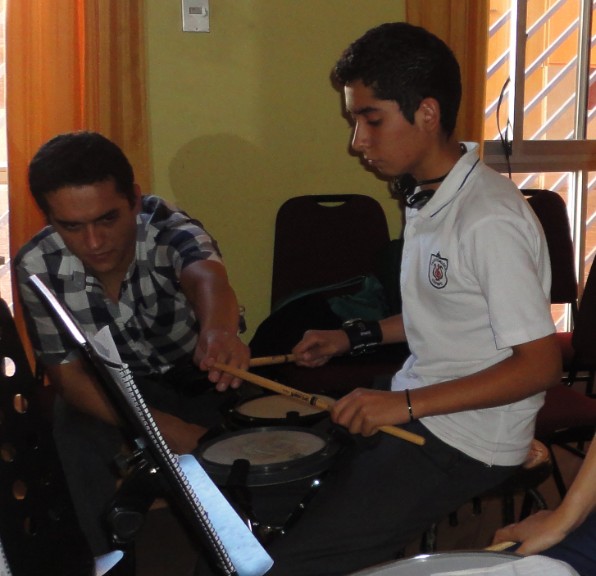 Clase de Percusión a cargo del Profesor Lucas Ledesma, ex alumno de nuestro recordado Profesor Oscar Arqueros (q.e.p.d.).