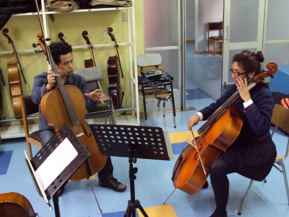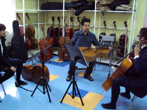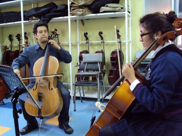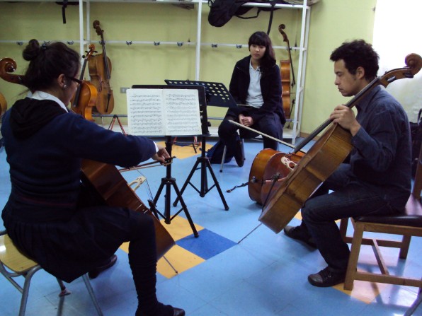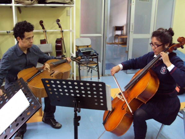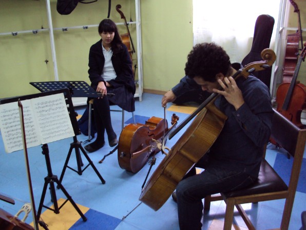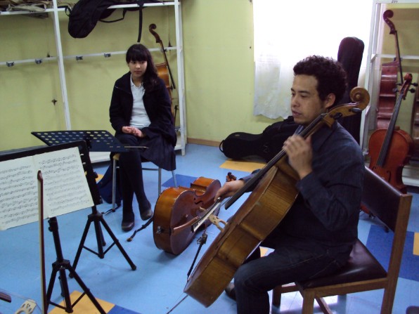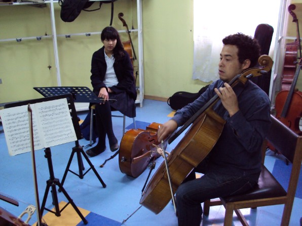 Cristián Peralta en 1er taller con los alumnos de violoncello.