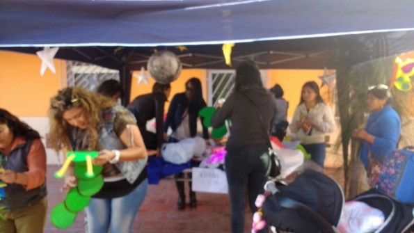 Los apoderados preparando stand.
